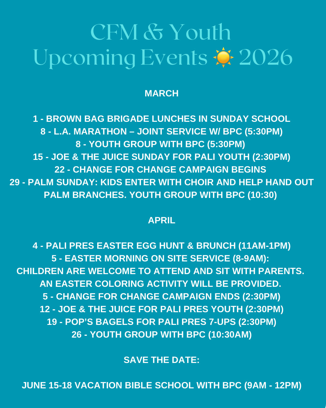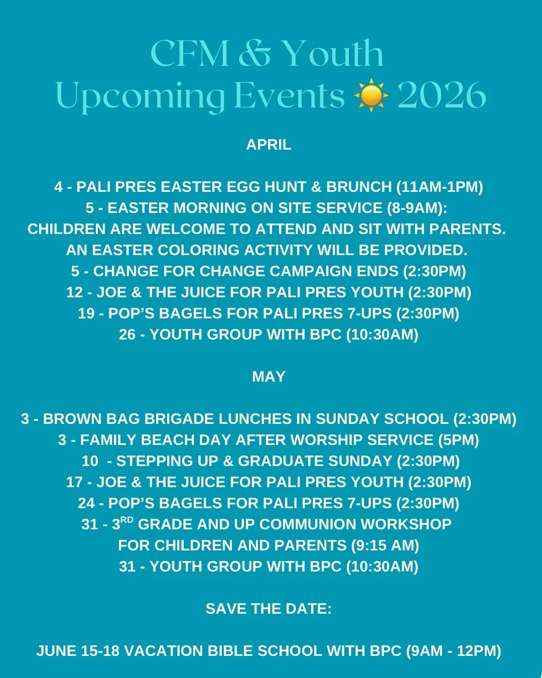 Celebrate Halloween a little early at our annual ‘Trunk-or-Treat’! All are welcome as we play games, take pictures, eat pizza, and of course trick-or-treat from the bountiful trunks of cars decorated by our congregants!